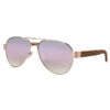 Det flotte matsorte metal stel med de træfarvede stænger og de virkelig flotte skarpe spejlglas gør denne solbrille unik, trendy og er simpelthen lige hvad du manglede i din solbrille kollektion.