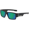 Cool sorte solbriller i et mat stel der giver et råt udtryk. Flotte farverige spejlglas.