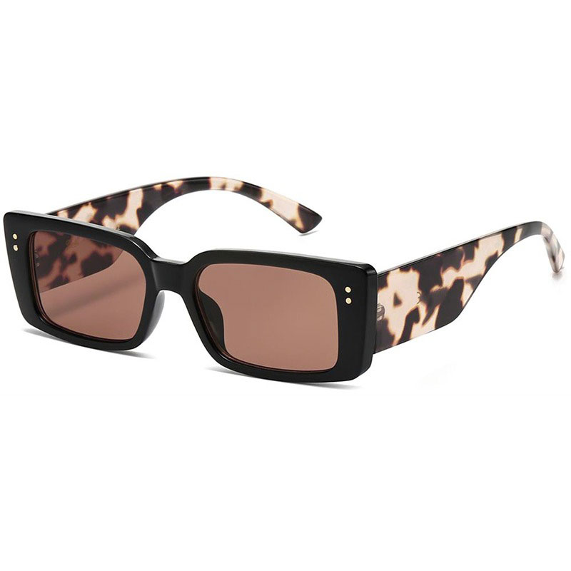 Solbrillerne har smukke metal prikker i siden og leopard print på de brede stænger, hvilket giver disse solbriller et meget eksklusivt look