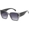 Glansfulde VG solbriller med metal detaljer, brede stænger og elegant mønster.