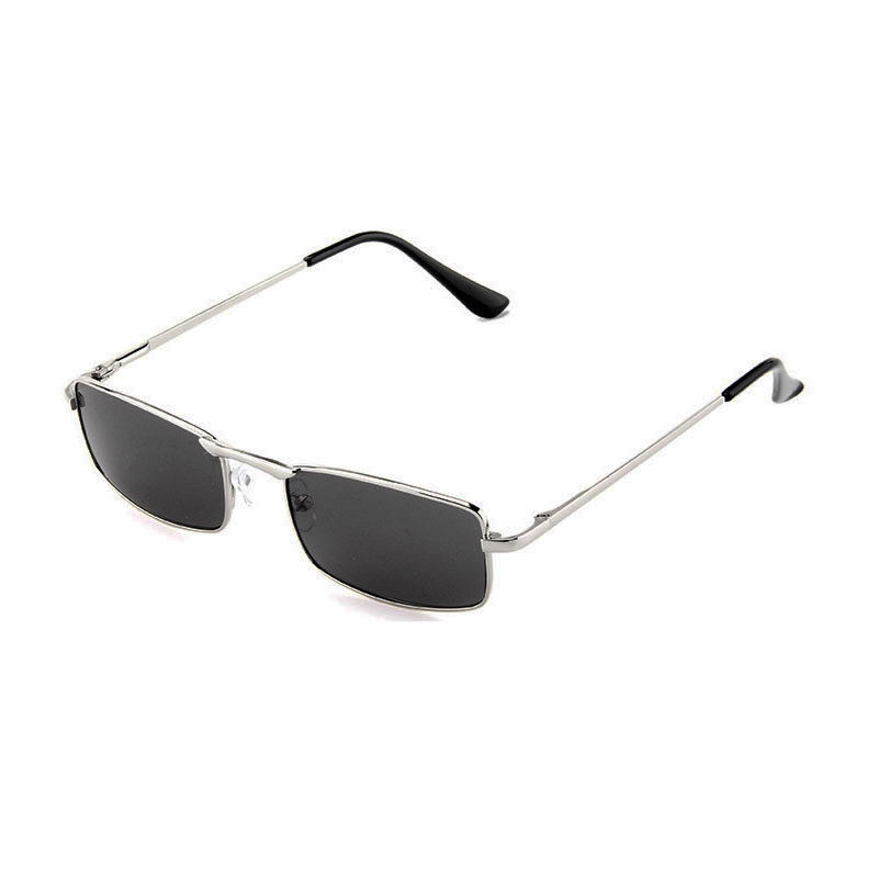 Ultra smalle Y2K Solbriller med mørke glas og sølv metal stel | Regensburg